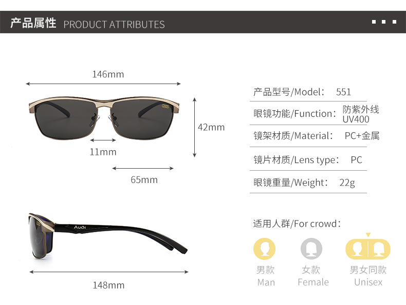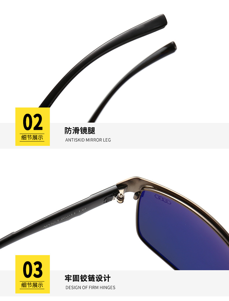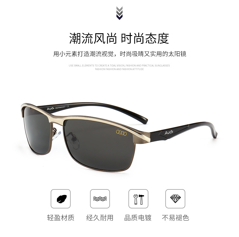 China Eyewear Factory Direct Wholesale Audi Car Brand Sunglasses Rectangle Metal Polarized Shades for Men Automotive Driving Glasses 551