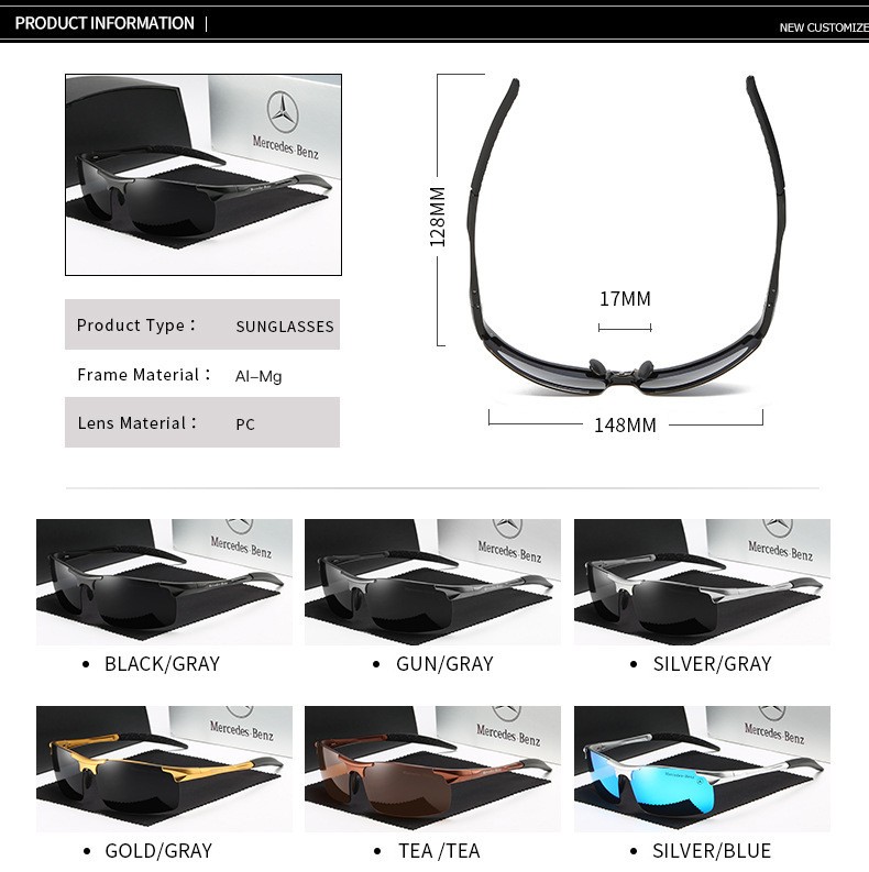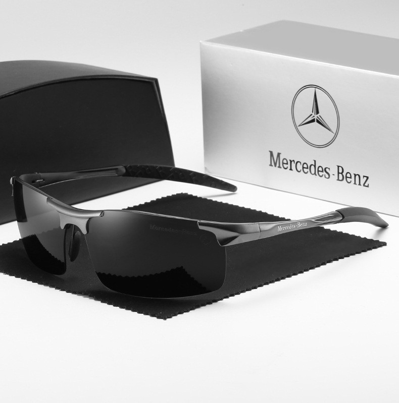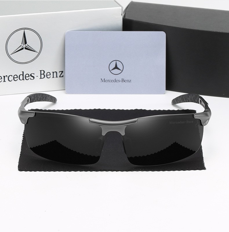 These Mercedes Benz driving glasses for men blend high-performance and luxury. Featuring a robust aluminum semi-rimless frame, they are designed for sports and automotive enthusiasts. The polarized lenses offer exceptional anti-glare protection, perfect for driving conditions. Each pair showcases the iconic Mercedes-Benz logo, making them a sophisticated accessory. Available for wholesale or custom your own brand, these sunglasses deliver superior optical clarity and a premium feel.